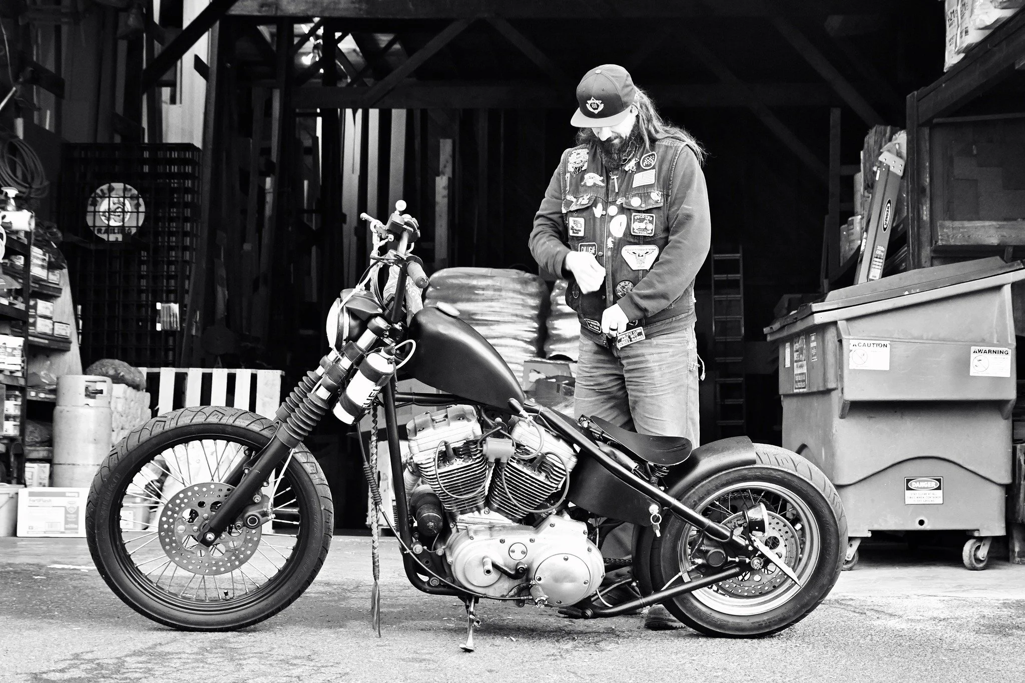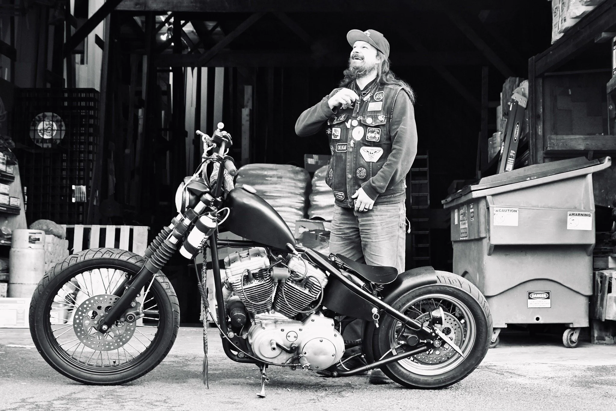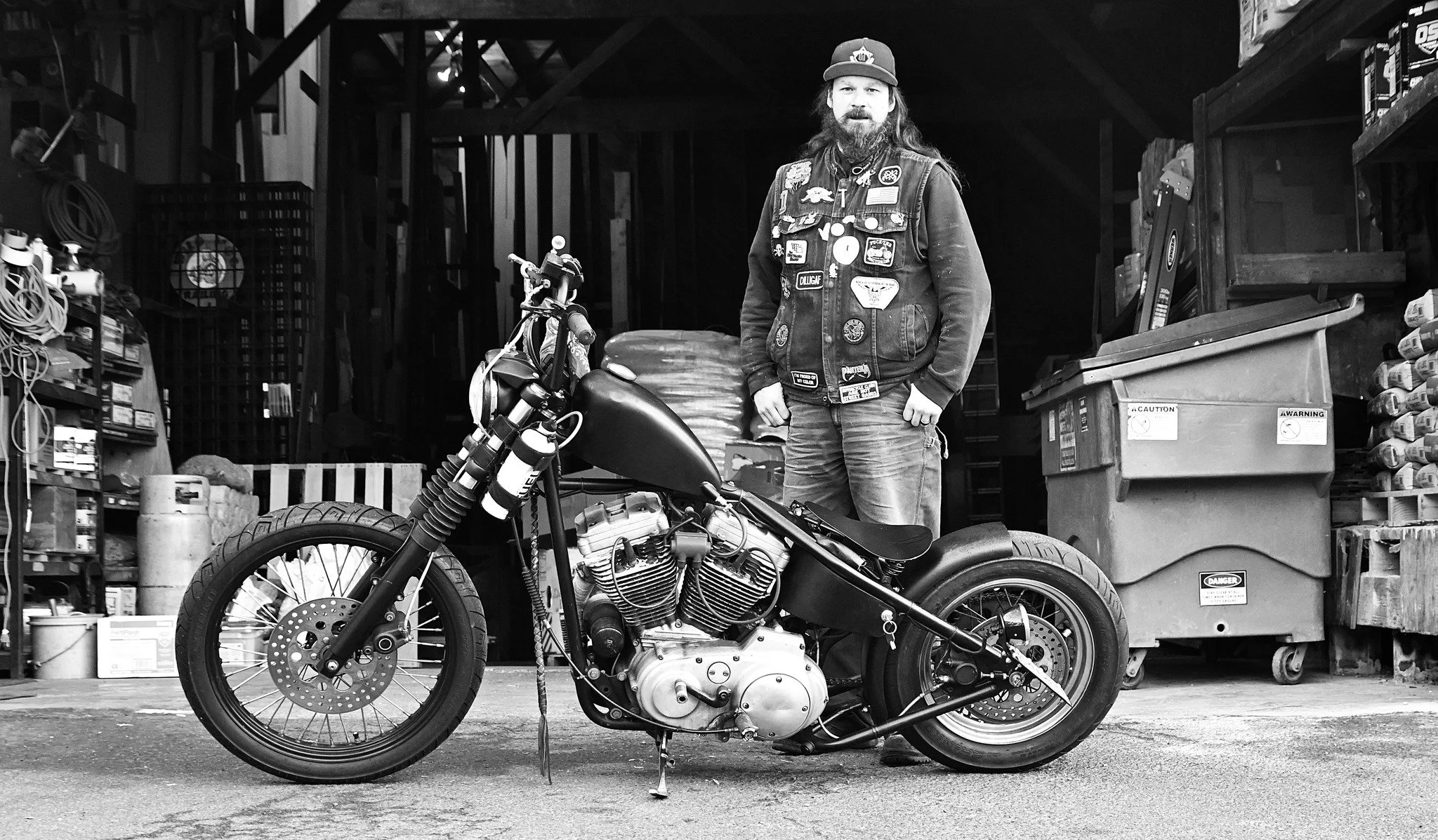 ~ It was morning and I was hungry. I had just made my way from a long search for some surf and I got skunked. Now, it was time to eat. Heading south along the highway, I approached a lumber yard and mill. As I passed, I spotted a Chopper and knew I had to stop and have a look. Parking the car, I climbed out and walked over to the bike. Nobody was around to ask any questions about it so I just took some shots. Finishing up, I looked over to the lumber yard and saw a guy standing with his arms crossed looking in my direction. I could tell right away that the bike belonged to him. He looked right at me as I walked toward him. As I got closer, I could see the expression on his face. He was smiling.