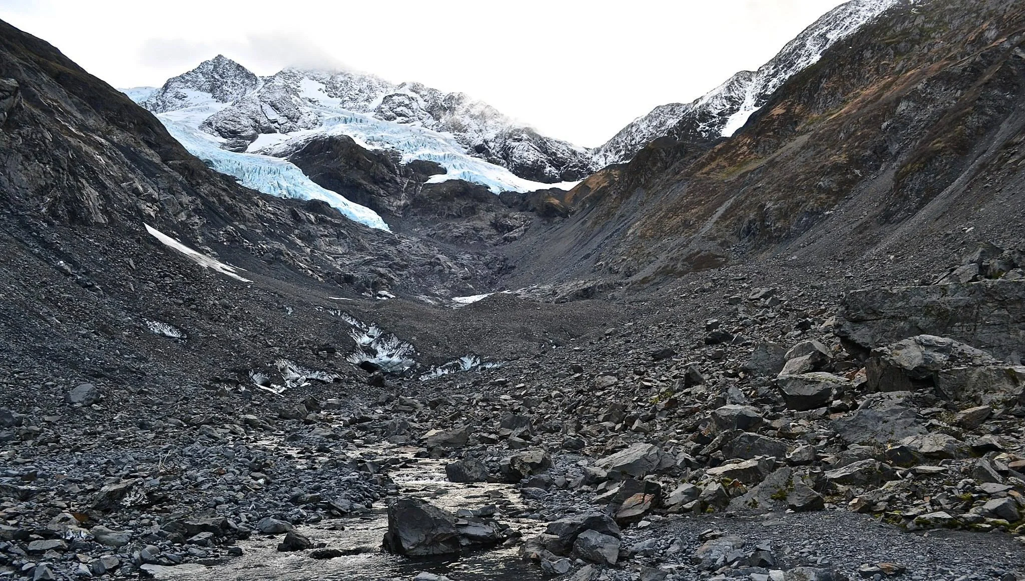 I made my way back to the cabin and grabbed my things. I hopped back in the truck and headed out along the Inlet until I got to the road that Lex told me to take. I turned and followed it deep into the woods. Eventually, I headed high enough that the trees gave way to the Glacial field. I parked the truck, grabbed my bag and began the walk uphill toward the mountain peak. There was nothing to see but big rocks, a dark gray landscape that extended to an ice covered peak and a river that consisted of melted, glacial ice. Everything was pretty bleak and desolate. I was the only person around and I had a bit of concern for myself. I ignored the concerns and began walking in the direction of the peak in front of me.