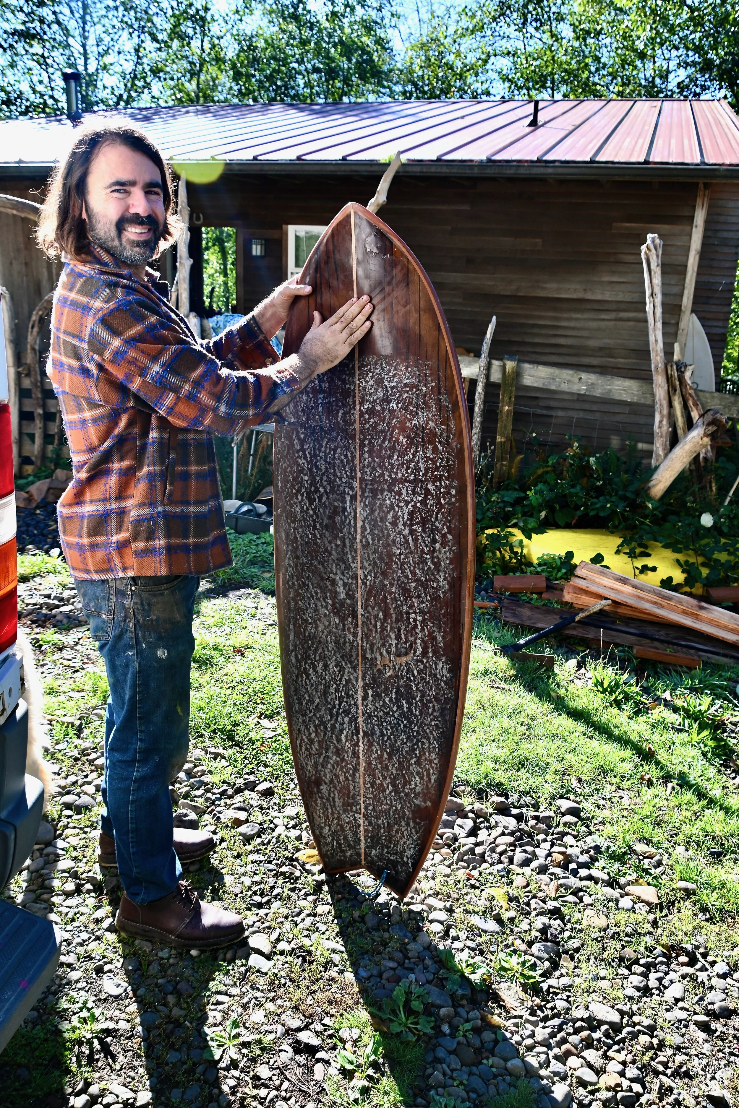 I stood in the yard outside, still with no idea as to what he wanted to show me. Henry was soft spoken and I liked his vibe. I was curious as to what I was about to see. He went inside and came out a minute later carrying a wooden surfboard under his arm. He was humbly smiling as he walked up to me and put it in my hands. I was immediately surprised by just how light it was.