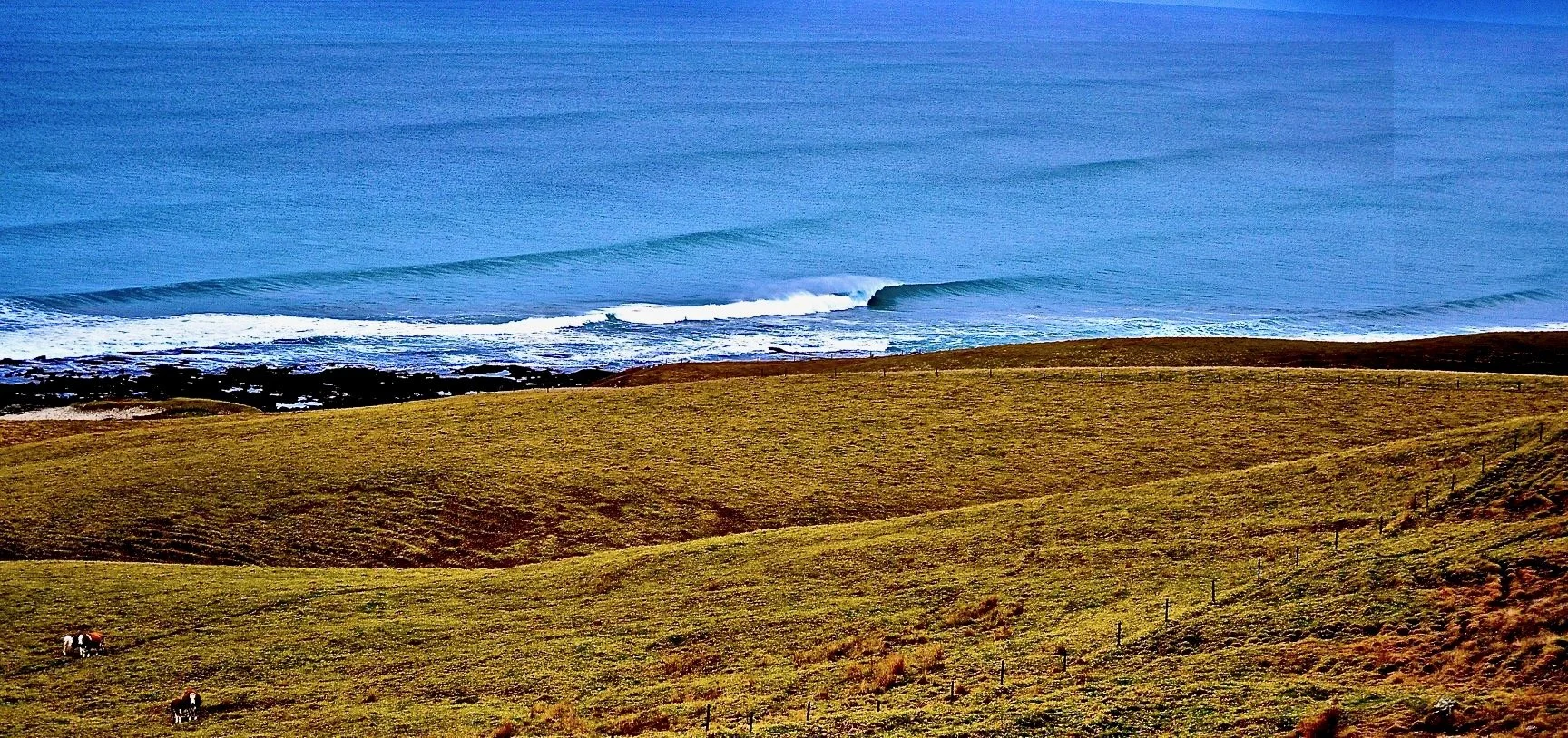 We arrived at the top and looked down at the Ocean. The surf was still good but, it was clearly the last day of this Swell. The man sat down on a tarp he had brought with him and I walked down to where my board and suit were. I paddled out into the cold water and rode some nice waves until the high tide shut things down. I made my way to shore over the rocks and packed my suit and board into my bag and walked back up to the top where the man smiled at me. He knew that I was stoked and he told me that if he were younger, he would have joined me.
